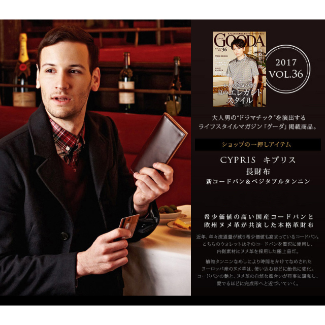 【キプリス】長財布(小銭入れ付き通しマチ束入)■新コードバン&ベジタブルタンニン