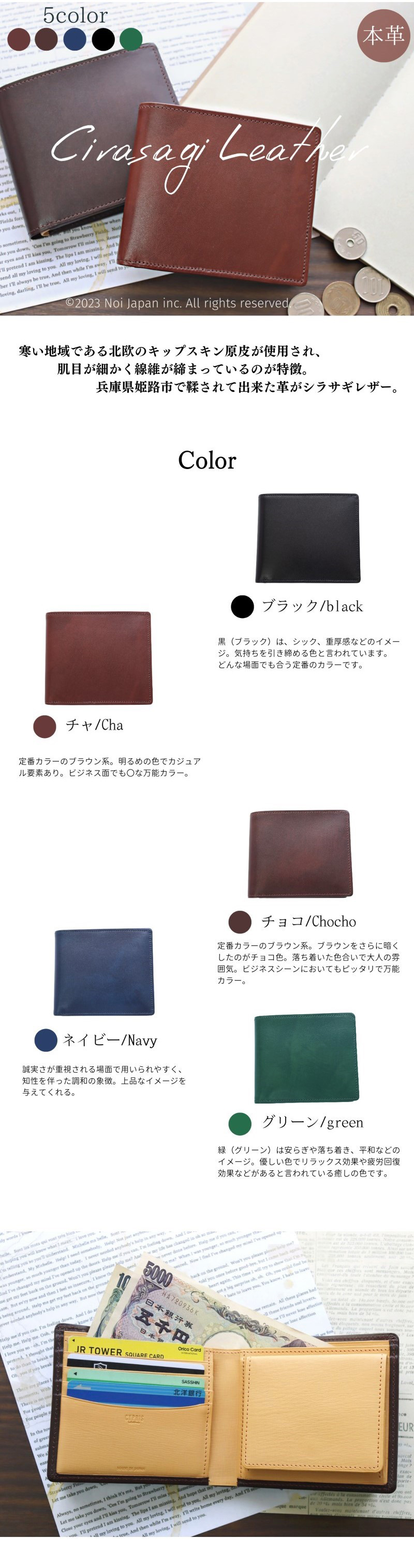 ※革製品の特性をご理解いただき、天然皮革ならではの風合いをお楽しみください。