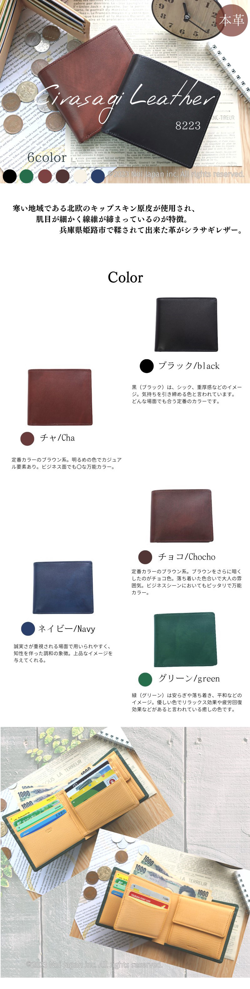 ※革製品の特性をご理解いただき、天然皮革ならではの風合いをお楽しみください。